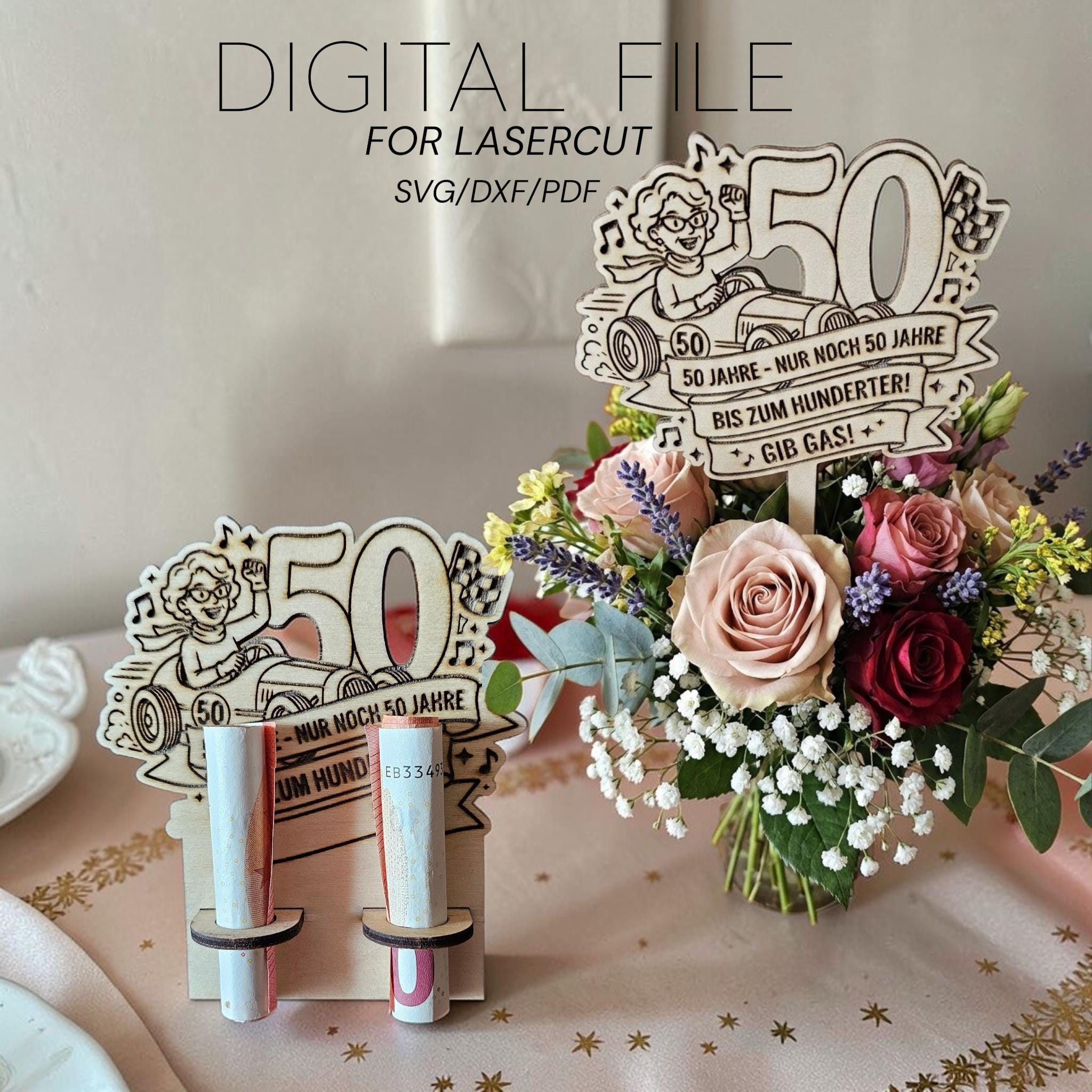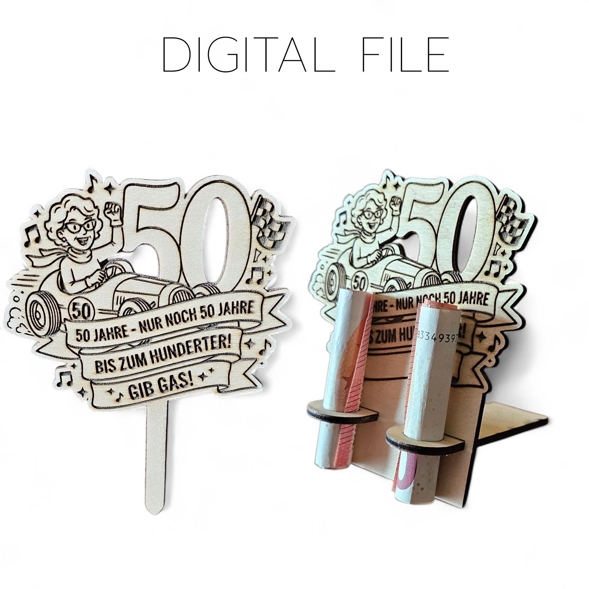 50ster Geburtstag Stecker und Geldgeschenk Display, Laser Cut, SVG Datei